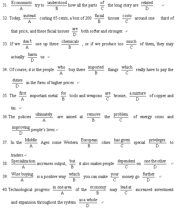 选择最佳答案完成句子,错选、多选或未选均无分.