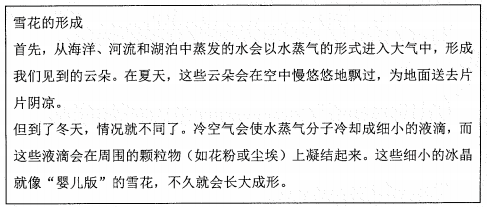 (1)把“雪花的形成”作为标题居中,黑体,三号: