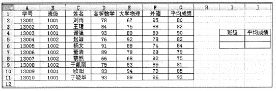 (I) 使用高级筛选方法筛选出班级为“1002”、 平均成绩大于80分的记录: