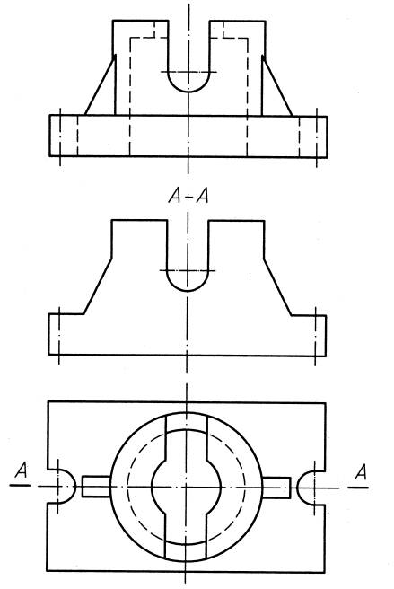 10.根据给出物体的主视图和俯视图,在中间空白线框内画出A-A半剖视图.