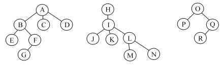 30.将题30图所示的由三棵树组成的森林转化为一棵二叉树.