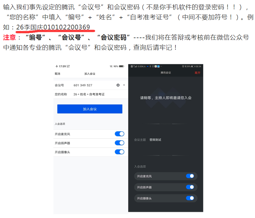 3、网上答辩方式:使用“腾讯会议”,设置有不同专业的答辩室,腾讯会议号及密码在答辩前陆续公布。考生实名登录后,选择对应专业的视频答辩室,按时参加答辩。