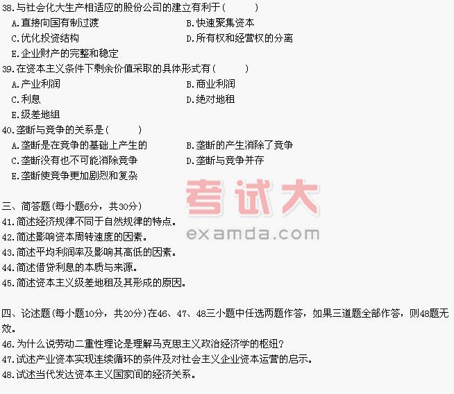 本文标签:河南自考 马克思主义政治经济学 全国2002年10月高等教育自学考试马克思主义政治经济学原理试题