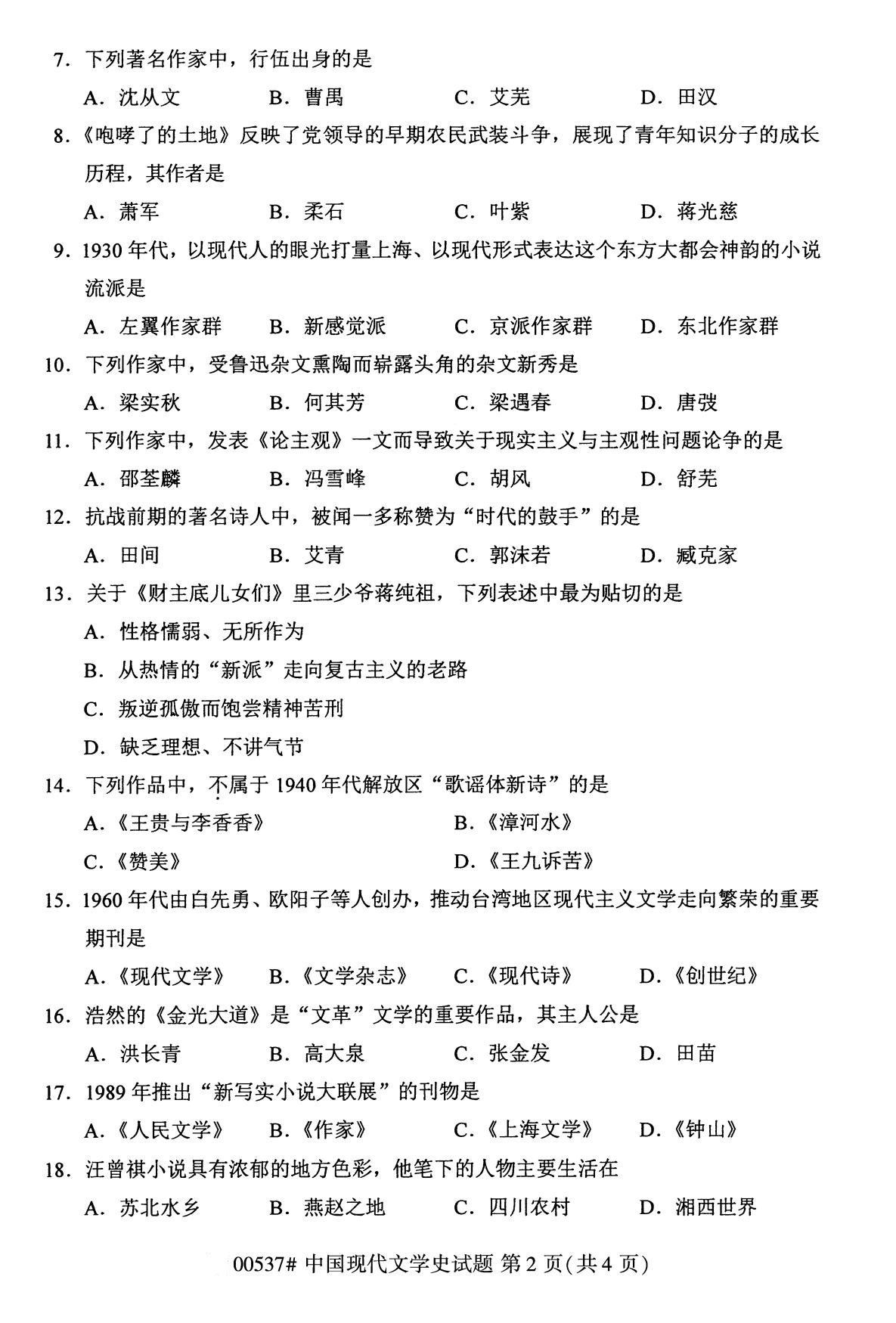 本文标签:河南自考 中国现代文学史 河南省2020年8月自学考试本科00537中国现代文学史真题