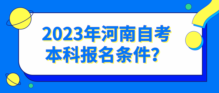 【 导读】2023年河南自考本科报名条件?很多同学对于这个问题不太清楚,那么河南自考网带大家一起了解一下,具体内容如下: