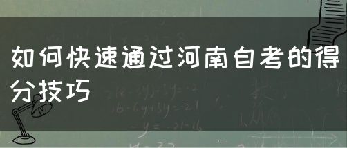 【导读】如何快速通过河南自考的得分技巧?对于报考了河南自考的考生来说,要想顺利的通过河南自考考试就必须得有一些考试得分技巧了。而为了更好的帮助到各考生,河南自考网就整理了河南自考得分技巧,希望能的对各考生有所帮助。