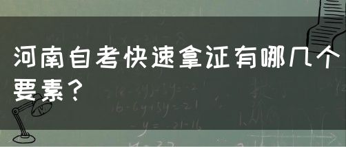 【导读】河南自考快速拿证有哪几个要素?还有很多同学不太清楚,那么河南自考网小编就带大家一起看看吧